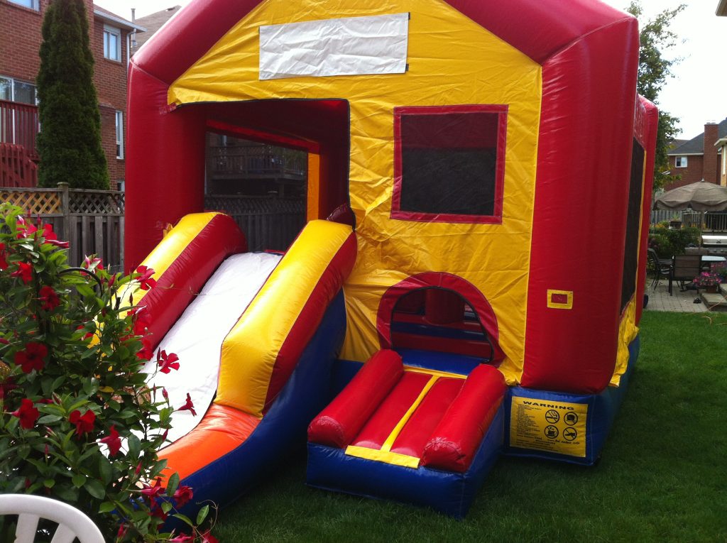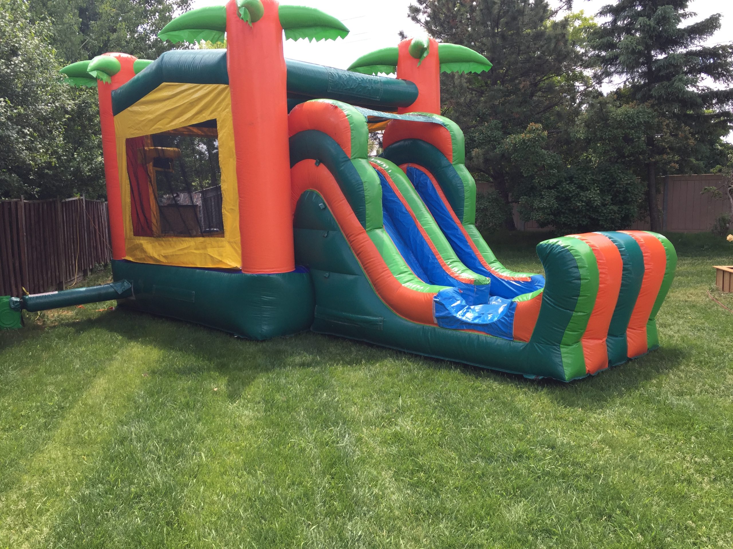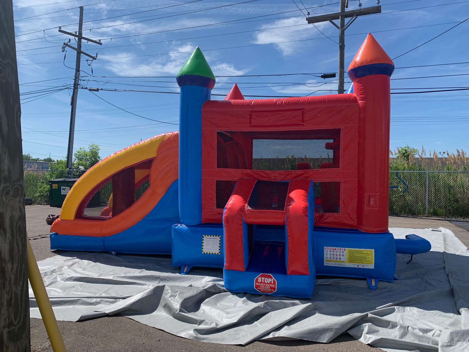 The slide castle has a wrap around slide and a jumping area. A lot of fun for ages 8 & under.